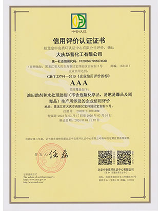 大慶華營化工有限公司成立于2006年7月10日,注冊資金3300萬元,公司類型為有限責任公司。位于大慶高新技術產(chǎn)業(yè)開發(fā)區(qū)宏偉園區(qū),是一家集油田助劑產(chǎn)品的研發(fā)、生產(chǎn)、銷售和技術服務為一體的現(xiàn)代化高新技術企業(yè)。公司注重科技創(chuàng)新,公司擁有18項自主知識產(chǎn)權(quán)。企業(yè)承擔過國家火炬計劃重點項目、國家科技型中小企業(yè)創(chuàng)新項目等,2011年被科技部火炬高新技術產(chǎn)業(yè)開發(fā)中心評為國家火炬計劃重點高新技術企業(yè)。公司十余種產(chǎn)品獲得中國石油天然氣集團公司產(chǎn)品質(zhì)量認可證書,其中粘穩(wěn)型驅(qū)油劑獲國家火炬計劃重點項目證書。公司憑借多年對大慶油田及周邊油田地質(zhì)情況的研究,可針對各油田地層特點調(diào)整產(chǎn)品的配方,更好地發(fā)揮各類油田助劑的性能。